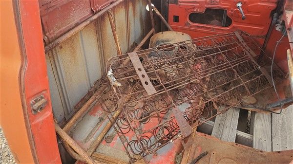 This truck cab comes with doors and also comes with a good North Dakota Title. Has the usual lower door rust and some cab corner rust. Has some dents in the roof but all in all a very useable cab. We will assist with delivery. $1,600