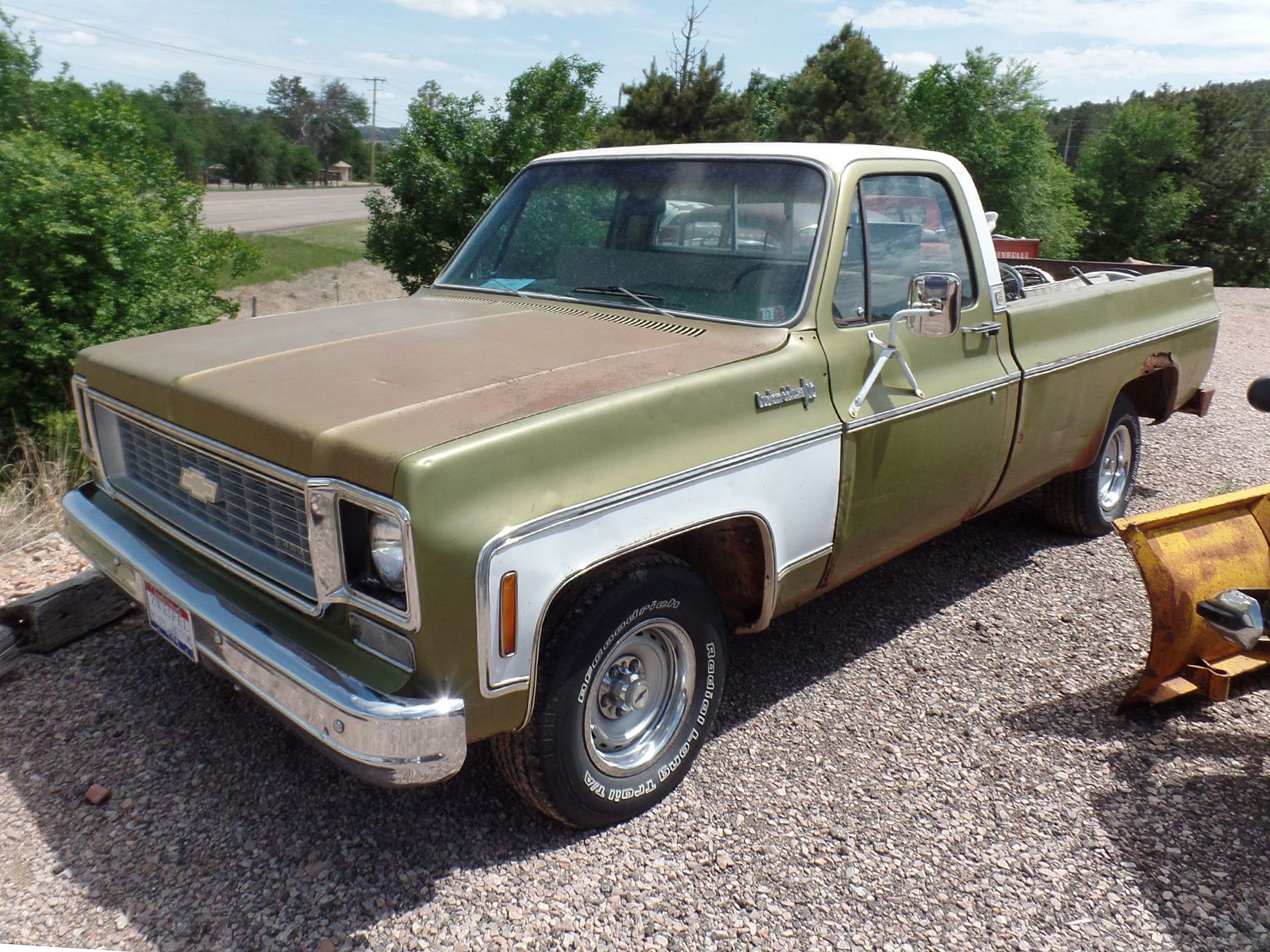 1973 Chevy C10 V8, 4 Speed Manual, PS/PB, Rubber Floor Mat! Original Air Conditioning! (Not Working!) most of the parts are there. Rusty in the areas that are common, have some patch panels that go with the truck! Runs and Drives!